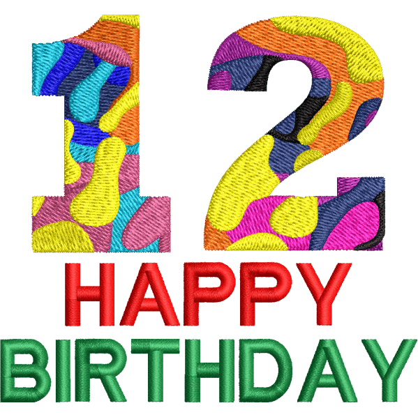 12th Birthday Design, This digital file is ideal for embroidery on cushions, bags, T-shirts caps, cushions, etc. The Color run sheet for the sequence is available within the downloaded folder. Select the color of your thread and stitch!Â
