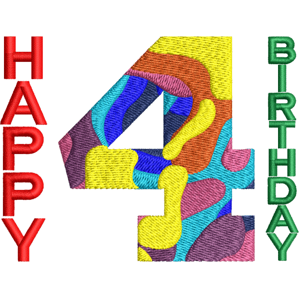 4th Birthday Design, This digital file is ideal for embroidery on cushions, bags, T-shirts caps, cushions, etc. The Color run sheet for the sequence is available within the downloaded folder. Select the color of your thread and stitch!Â