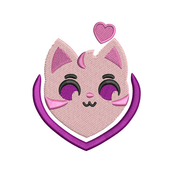 Cat Face With Heart Design, This digital file is ideal for embroidery on cushions, bags, T-shirts caps, cushions, etc. The Color run sheet for the sequence is available within the downloaded folder. Select the color of your thread and stitch!Â