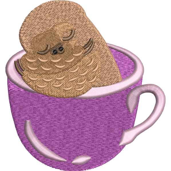 Sleeping In Cup Design, This digital file is ideal for embroidery on cushions, bags, T-shirts caps, cushions, etc. The Color run sheet for the sequence is available within the downloaded folder. Select the color of your thread and stitch!Â